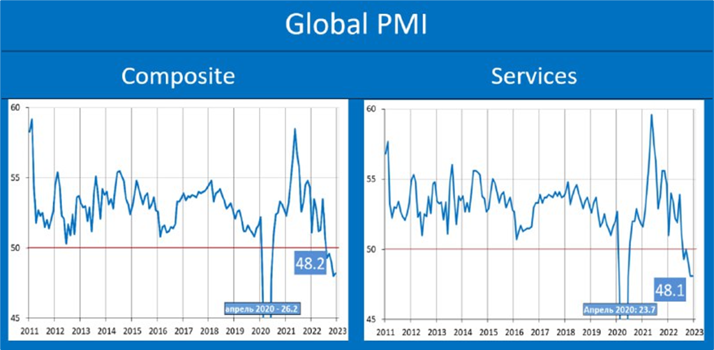 ● Опережающий индекс PMI говорит о снижении деловой активности как в большинстве крупнейших экономик мира, так и в мировой экономике в целом.