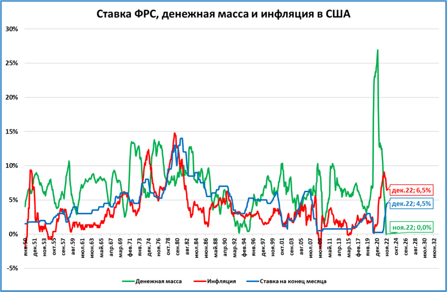 ● Инфляция в США в 2022 году составила 6,5%. Как и в Еврозоне, это не поможет экономике, если повторится ситуация ноября. Тогда денежная масса замедлила свой рост быстрее, чем снизились цены = падение реальной денежной массы ускорилось.
