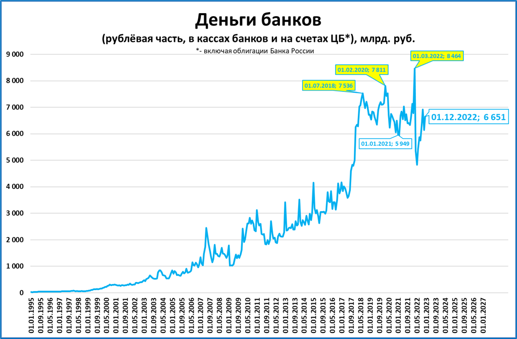 Деньги банков (= банковские резервы) сейчас ниже, чем в 2018 году. И это номинал.