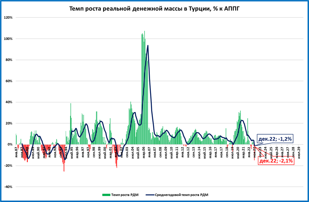 ● Падение реальной денежной массы в Турции в декабре резко замедлилось. Страна «цепляется» за рост экономики.