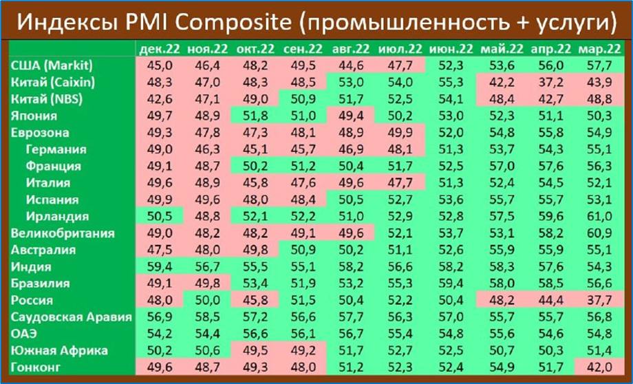 Напомним, что индекс ниже 50 пунктов говорит о снижении деловой активности.