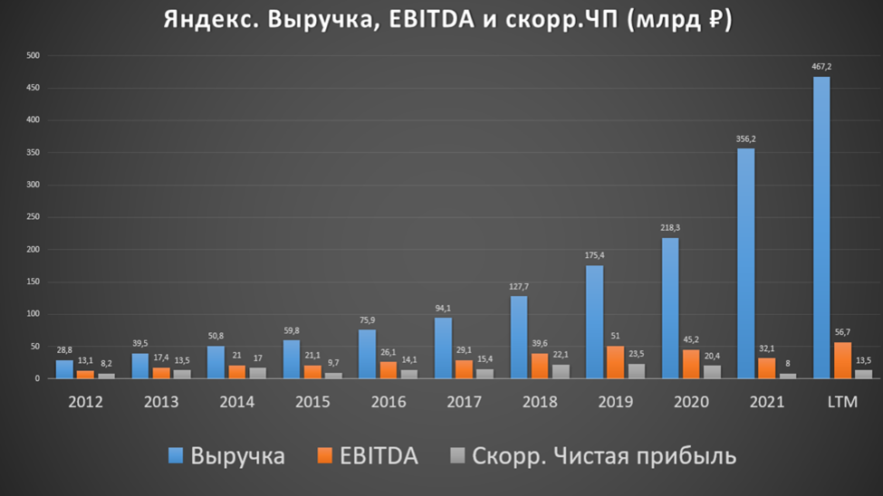 Яндекс – это быстрорастущая компания. За последние пять лет средний ежегодный рост выручки превышает 37%.