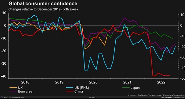 Настроения потребителей резко ухудшились, хотя в конце года наметилось осторожное улучшение.