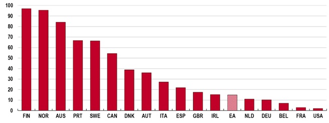 Главным драйвером инфляции в еврозоне и Великобритании стал рост производственных издержек, связанный с удорожанием газа и электроэнергии. По данным OECD, в сентябре 2022 года оптовые тарифы на газ в Германии, Франции и Великобритании были в 11 раз выше уровня марта 2021 года, в Японии — в 7,7 раза, в США «всего» в 3 раза. Перенос скачка цен на газ в цены электроэнергии для промышленности был неодинаковым по странам и зависел от особенностей энергорынка. Так, в Германии и Франции эти тарифы за 1,5 года выросли более чем в 7 раз, в Великобритании — в 4,7 раза, в Японии — в 4 раза, в США — в 3,5 раза.