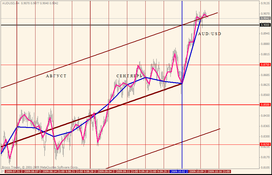 Динамика котировок курса AUD/USD пока укладывалось в построение тенденции прошлого квартала, что видно на графике 4 часов, учитывая построение допустимых отклонений.