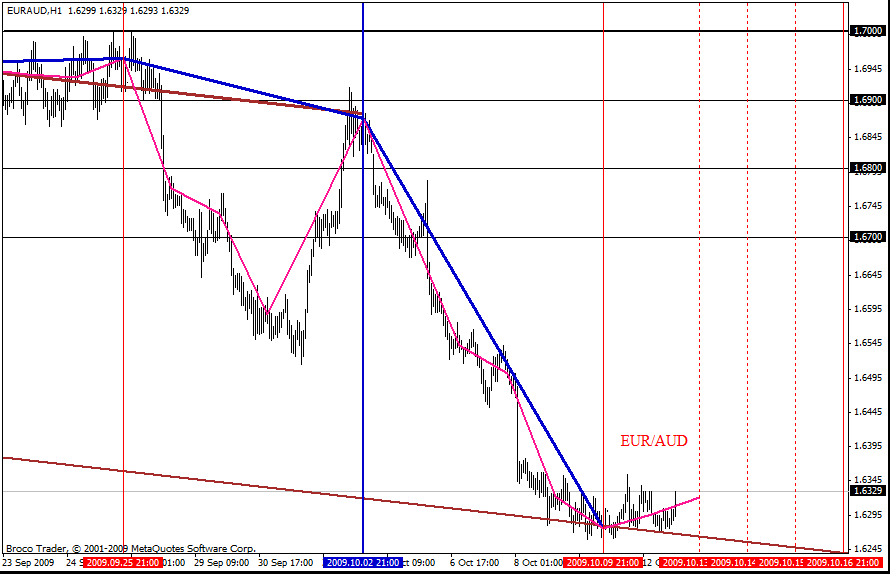 В тоже время котировки кросс-курса EUR/AUD на основе построений (график 4 часа) вышли к уровню 1.63, что даёт основание делать предположение, что сильный технический уровень 1.63, как допуск снижения относительно 1.65, может стать сильной основой для коррекционного роста.