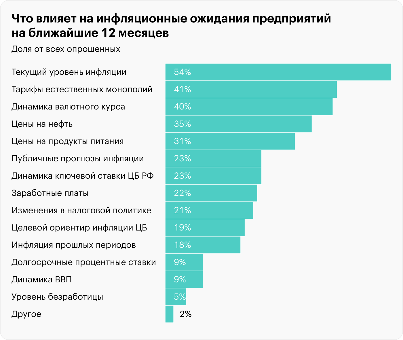Прошлая инфляция — один из главных факторов. Как правило, чем выше инфляция в предыдущий период, тем выше инфляционные ожидания.