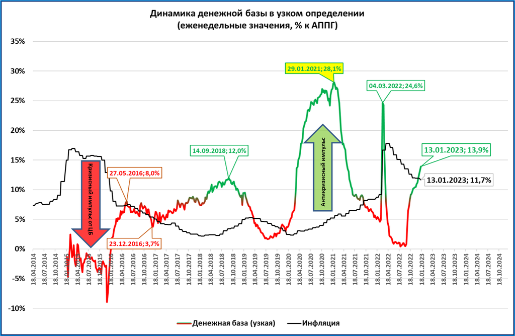 * По недельным данным. По месячным данным реальный рост УДБ уже был зафиксирован на 1 января 2023 года.