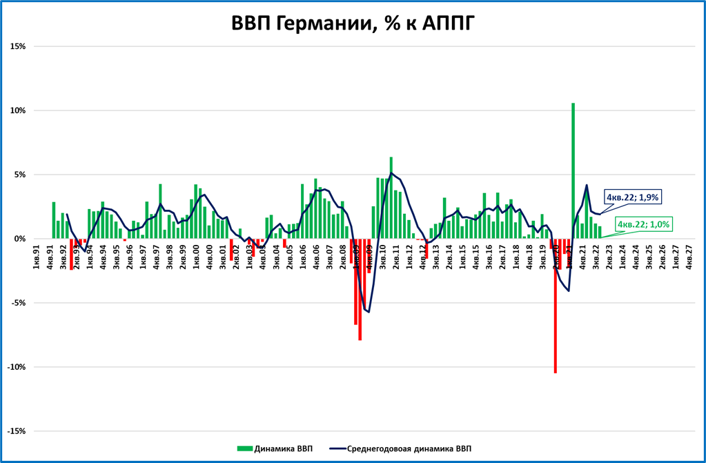По итогам 2022 года экономика Германии выросла на 1,9%.