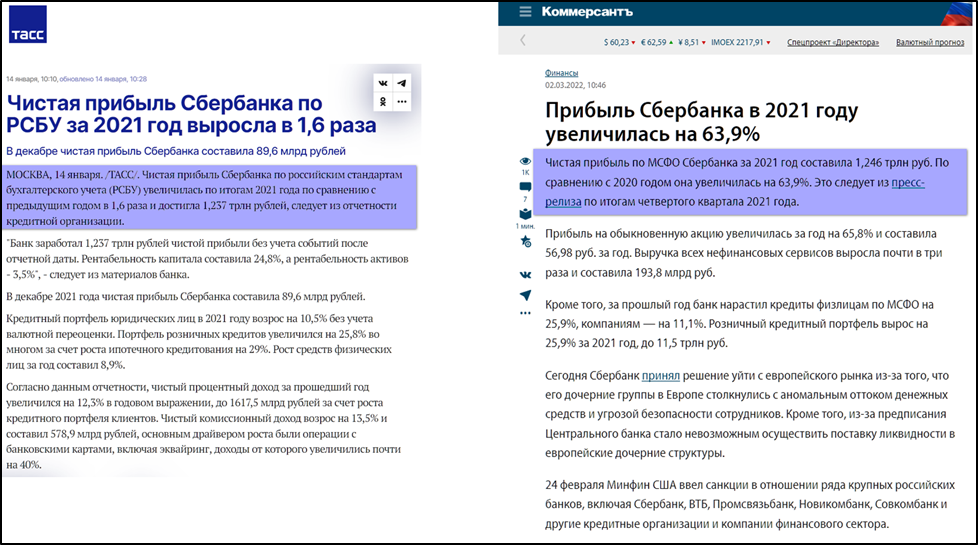 В релизе отмечается, что результаты достигнуты без использования послаблений Банка России для кредитных организаций (таких как фиксация валютного курса, стоимости ценных бумаг, льготное резервирование по кредитам отдельным компаниям и прочие). Сбербанк с запасом выполняет все нормативы, установленные Наблюдательным советом в декабре 2021 года.