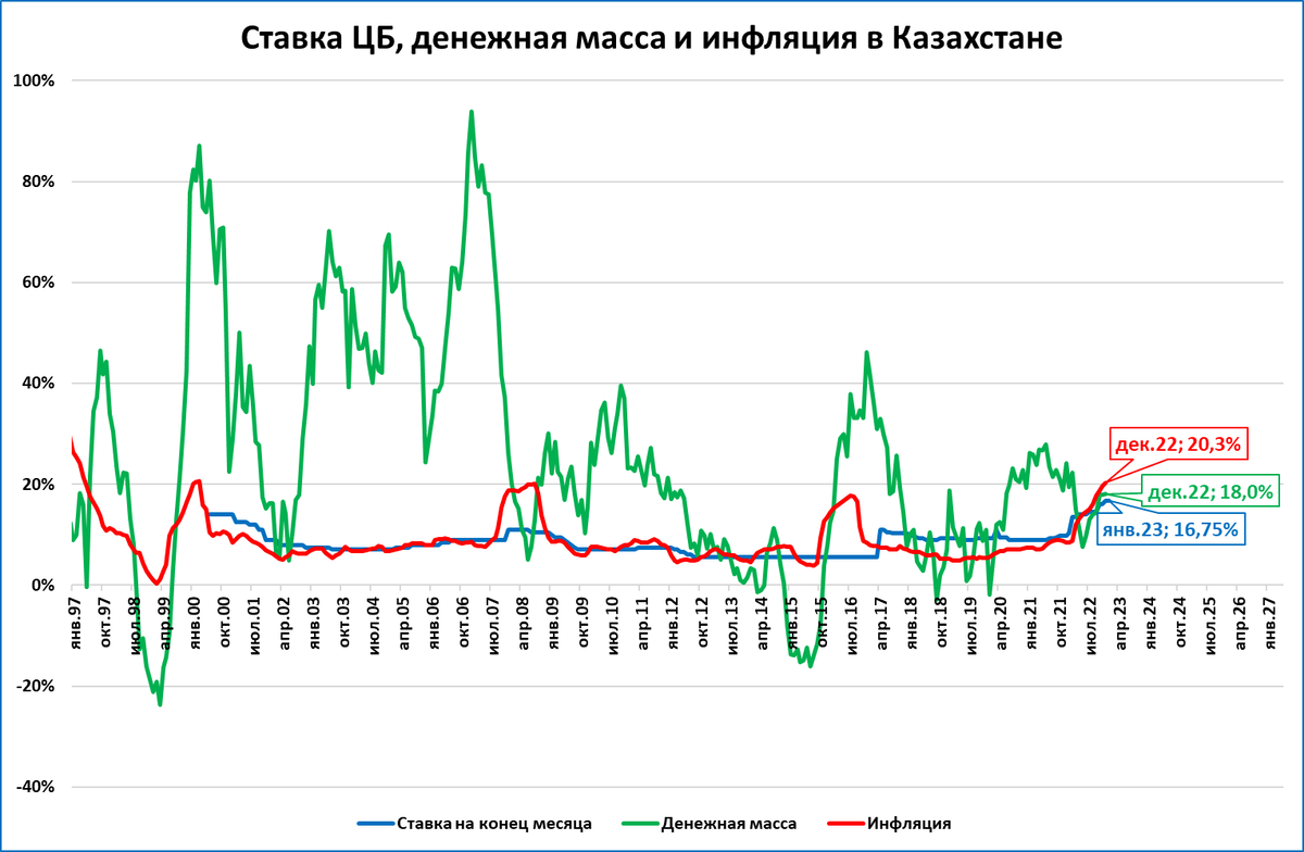 Ослабление тенге может быть причиной сжатия денежной массы в Казахстане, если ЦБ прибегает к (губительным) валютным интервенциям в поддержку национальной валюты вместо (правильного) повышения ставки.