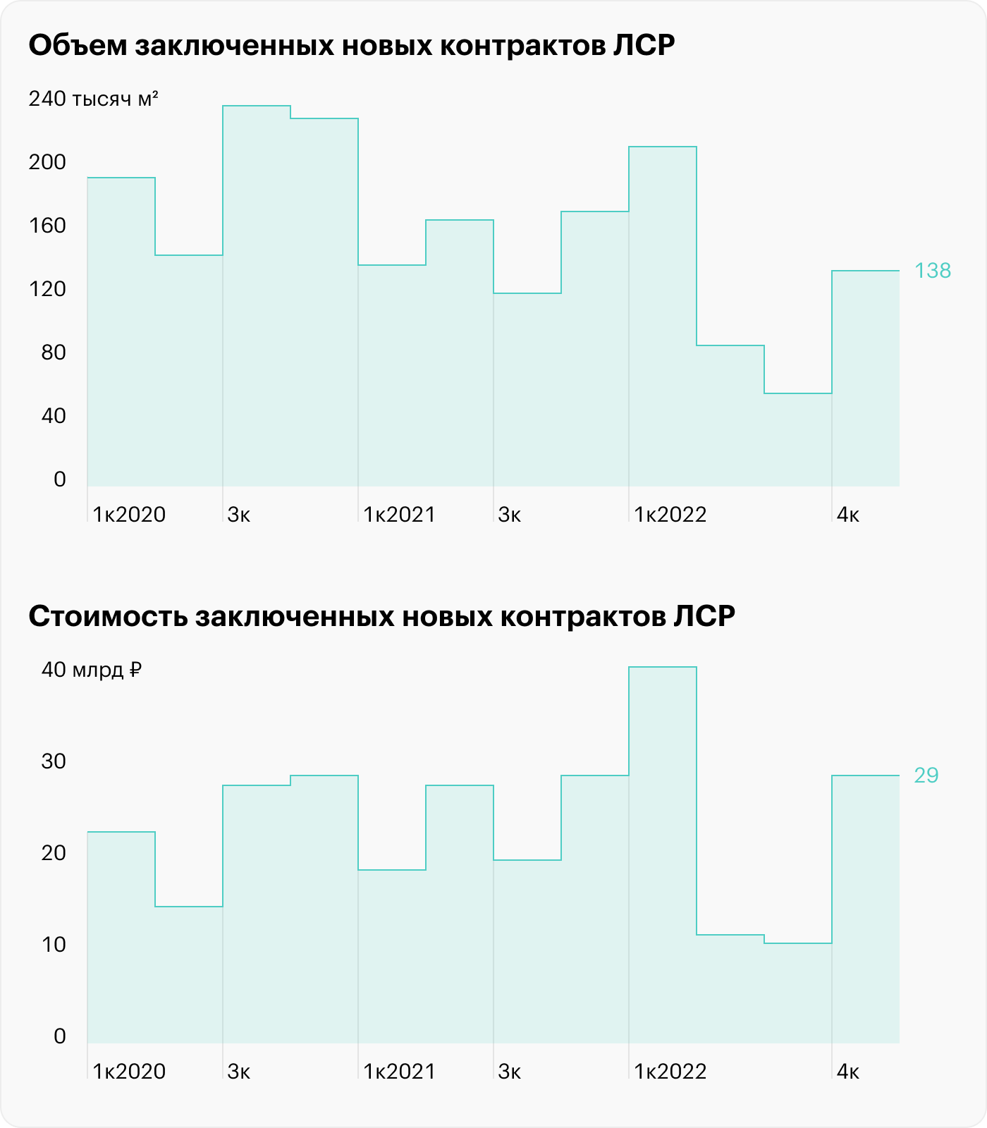Количество новых заключенных контрактов сократилось на 22% — до 138 тысяч квадратных метров на фоне более низкого спроса.