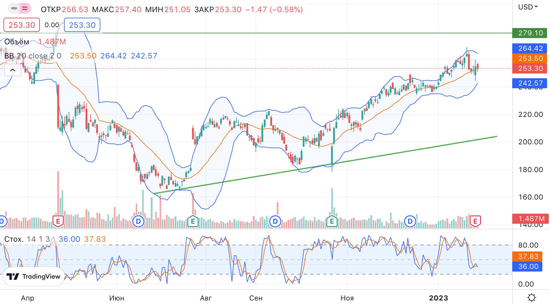 На дневном графике акций HCA Healthcare выстраивается среднесрочный восходящий тренд, который на данном этапе не показывает признаков ослабления или близящегося разворота. Ближайшее сопротивление расположено на отметке 279.