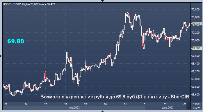 "Минфин РФ в пятницу обнародует план по объему продаж юаней на февраль. Ждем, что объемы будут увеличены в 2,5 раза - до 140 млрд руб., и это умеренно поддержит рубль. Вторым фактором поддержки для рубля может стать глобальное ослабление доллара, если данные по рынку труда США за январь окажутся ниже ожиданий", - отмечают эксперты в комментарии.