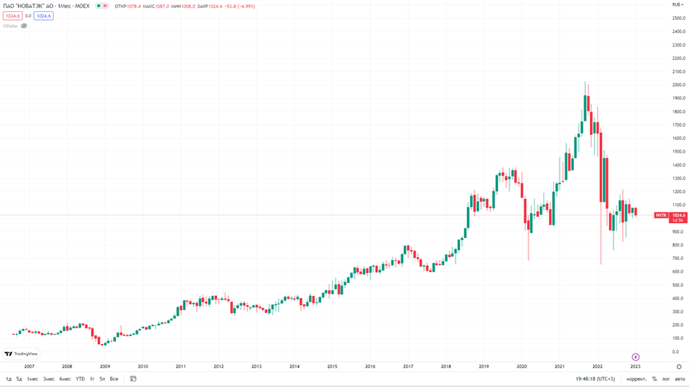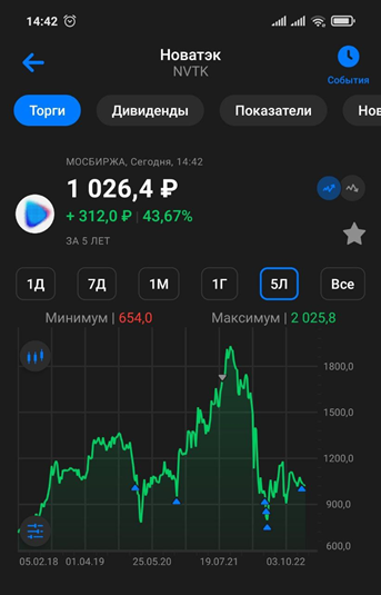 Мне Новатэк нравится, и если 1,5 года назад акции были слишком дорогими, и тогда на уровне 1700₽ я полностью закрыл позицию, зафиксировав хорошую прибыль. То сейчас котировки снова интересны. У меня уже сформирована небольшая позиция, которая плюсует примерно на 15%. При падении ниже 1000₽ буду стараться снова докупать.