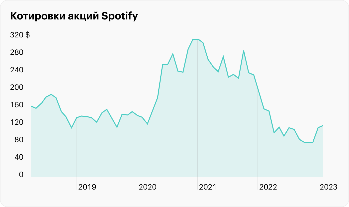 Годовые показатели Spotify в долларах. Источник: TradingView