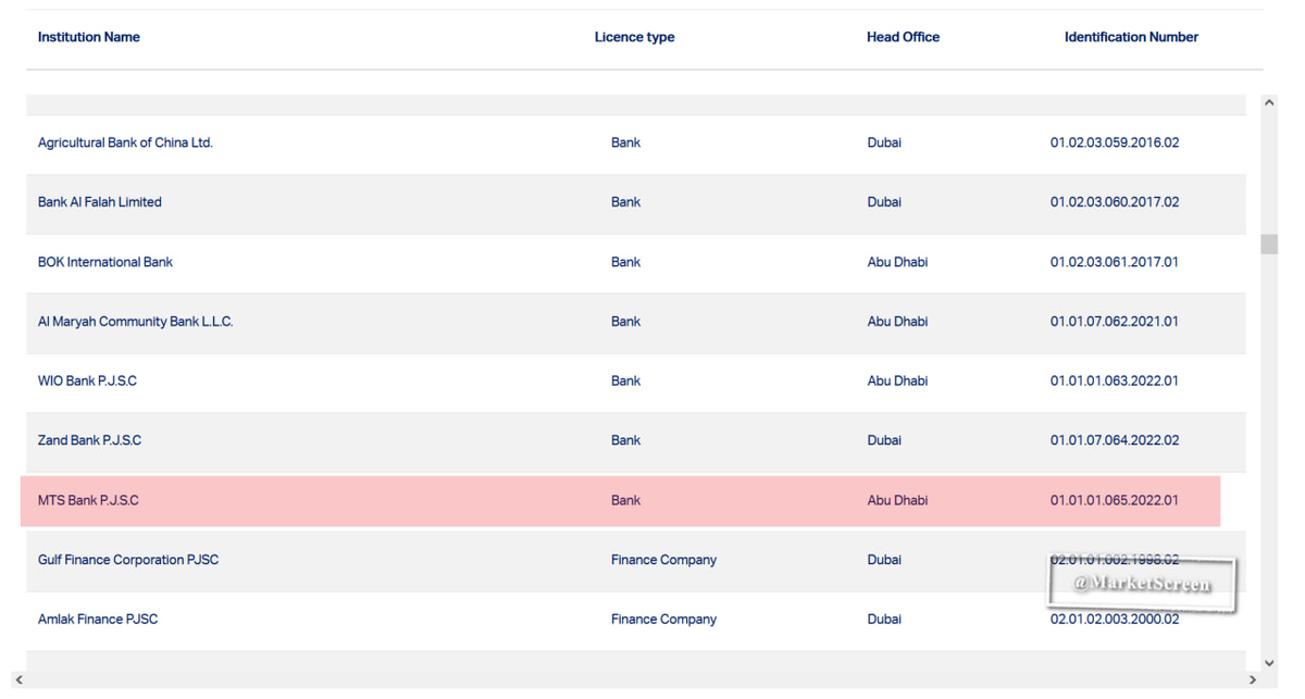 Интересно... МТС Банк получил лицензию Центробанка ОАЭ