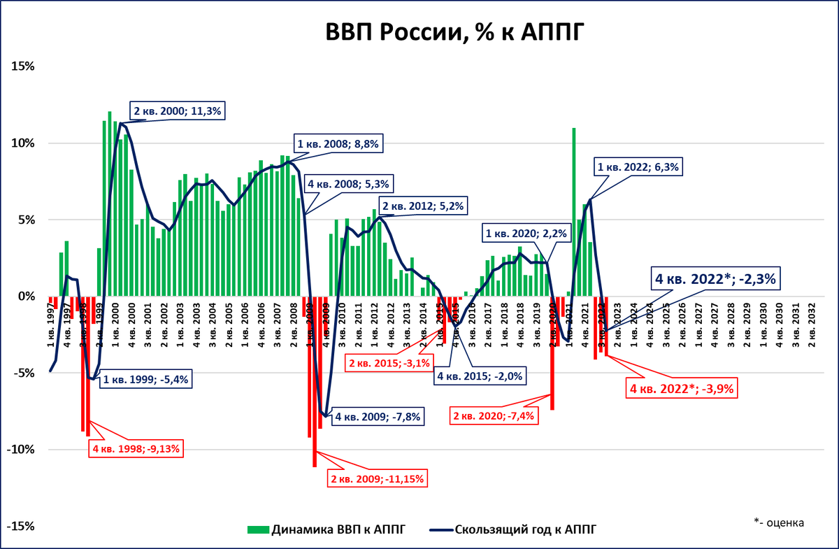 Если такое предположение верно, то ВВП в 2022 году сократился на 2,3%.
