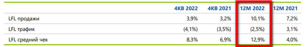 В итоге сопоставимые продажи (показатель продаж без учета открытия новых магазинов) прибавили 10,1%. В целом, LFLпоказатели ниже инфляции.