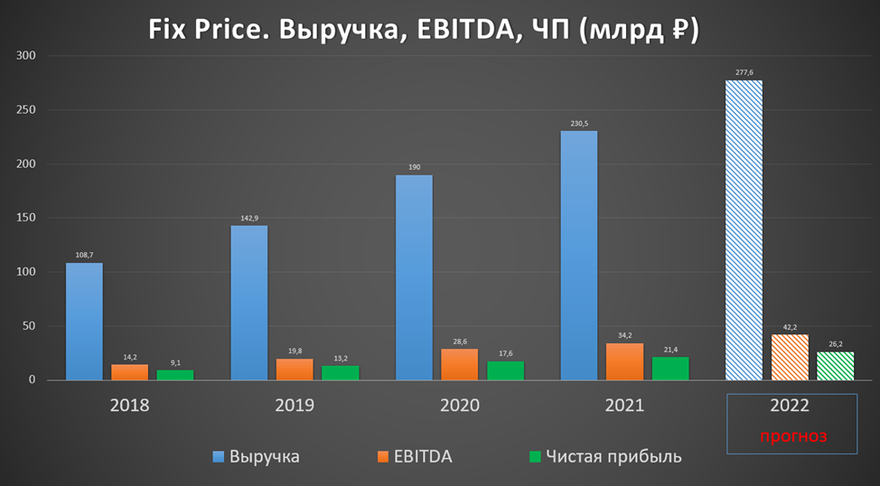 Т.к. Fix Price позиционируются как компания роста, поэтому она традиционно торгуется с высокими мультипликаторами. В цену уже включено продолжение расширения сети магазинов и дальнейший бурный рост выручки.