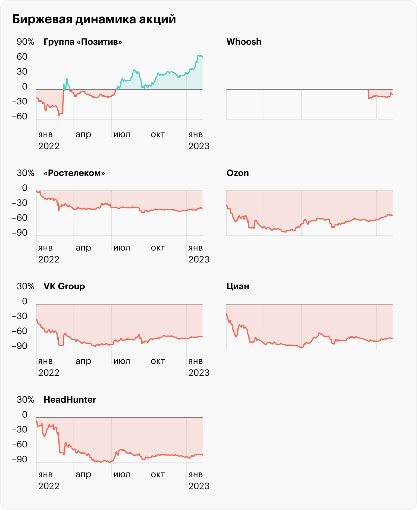 На Мосбирже основные разработчики российского программного обеспечения — «Позитив» и «Ростелеком». Кроме этого, остальные шесть ИТ-компаний — «Яндекс», VK Group, Ozon, HeadHunter, Whoosh и «Циан», — вероятно, тоже могут получить льготный кредит на финансирование собственных ИТ-проектов, а вот Softline Holding сделать это не может из-за продажи своего российского подразделения.
