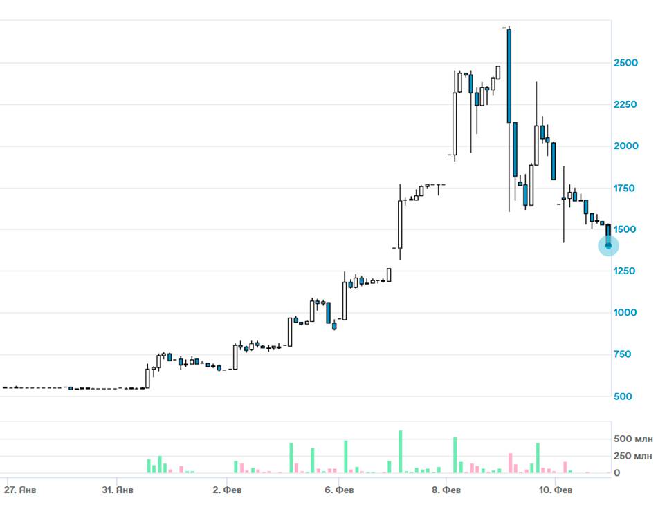 8 февраля Московская биржа выпустила короткий пост, в котором обратила внимание на повышенную волатильность в некоторых акциях. Инвесторам рекомендовали принимать взвешенные решения о покупке и продаже ценных бумаг с учетом официальной информации от профучастников и самих эмитентов. Тем самым биржа косвенно подтвердила факт искусственного разгона акций.