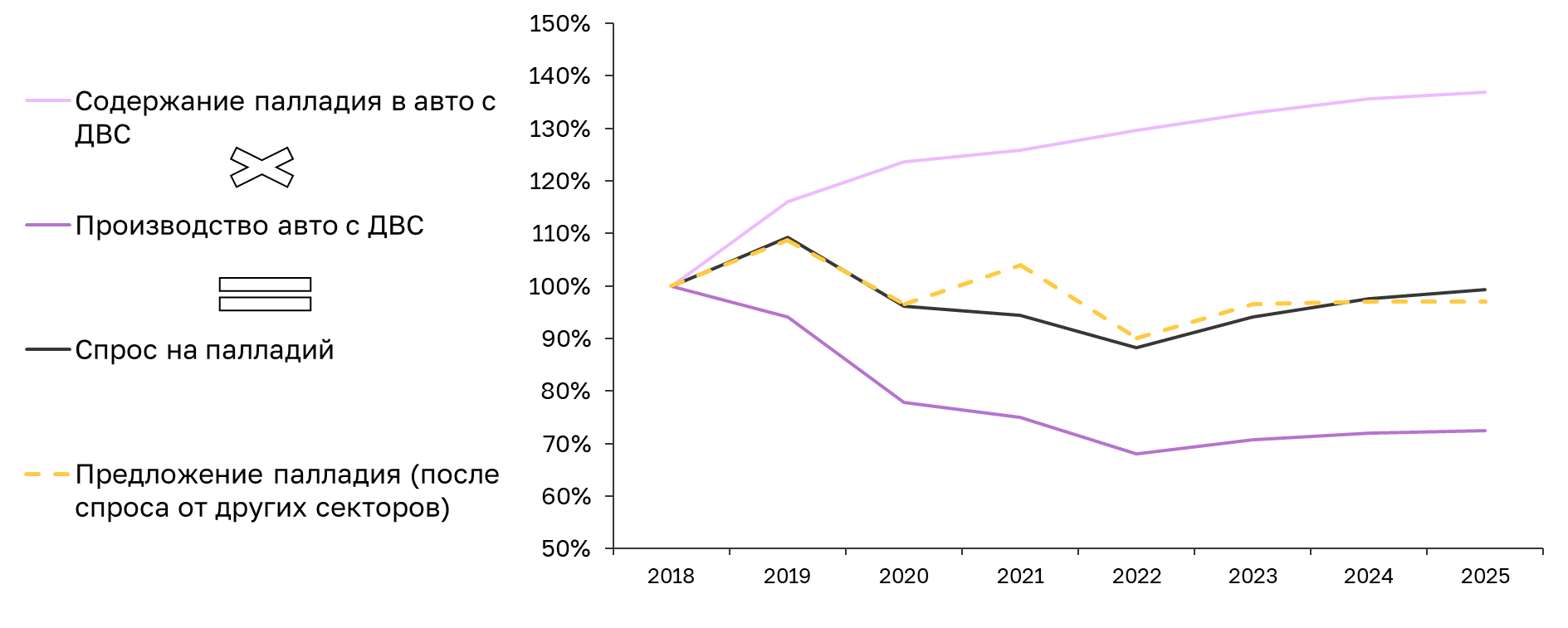 ❗️Среди небольшого числа факторов, позитивно влияющих на спрос, отметим постепенное ужесточение мировых стандартов выбросов вредных газов (к примеру, переход Китая в 2023 г. со стандарта 6a на стандарт 6b), которое в долгосрочной перспективе может привести к увеличению среднего содержания палладия в двигателе одного автомобиля.