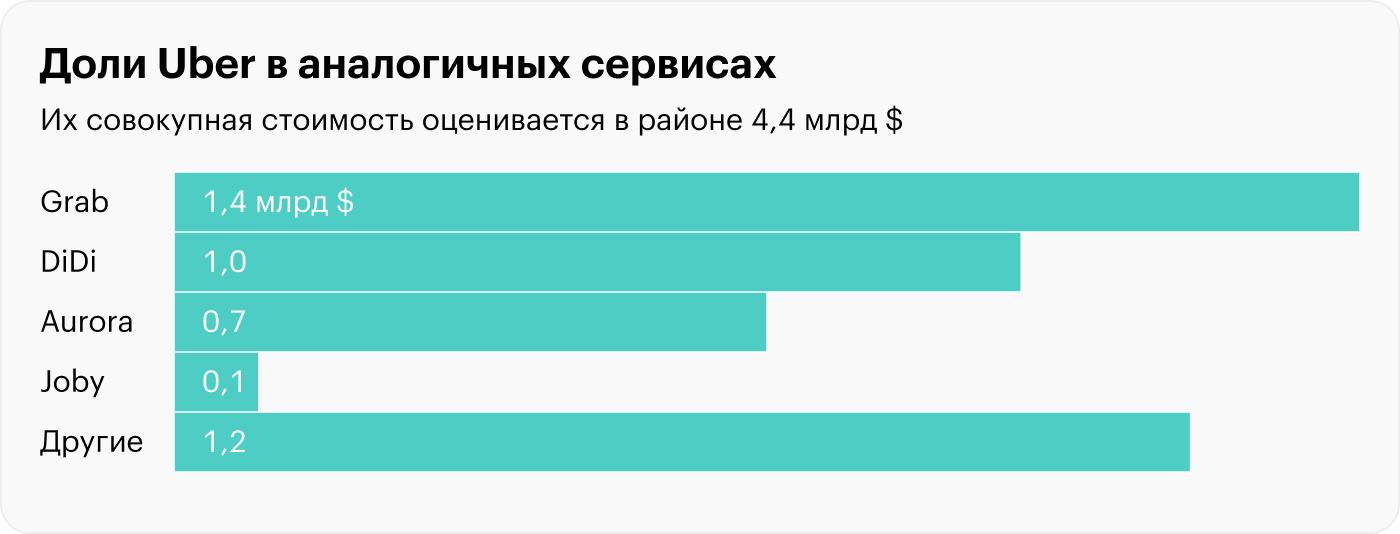 Впрочем, дополнительным источником ликвидности для Uber могут стать доли в аналогичных сервисах типа DiDi: их стоимость осенью минувшего года оценивалась в районе 4,4 млрд долларов. Но с тех пор много воды утекло и стоимость долей Uber в этих компаниях могла упасть под влиянием негативной биржевой и экономической конъюнктуры.