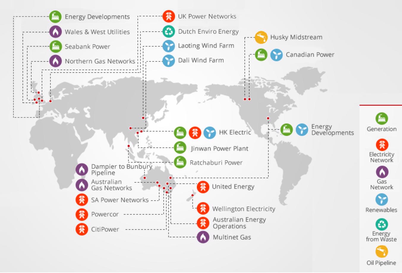 Под управлением компаний холдинга в общей сложности находится 9,7 ГВт мощности (10,5% — ВИЭ), 402,5 тыс. км распределительных электрический сетей, 112 тыс. км газораспределительных сетей и 2,2 тыс. км нефтепроводов. Крупнейшими географическими рынками Power Assets являются Гонконг, Великобритания и Австралия, где компания зарабатывает 16%, 46% и 21% чистой прибыли соответственно.