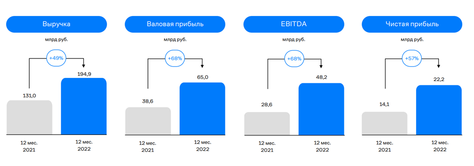 В целом все результаты за год продемонстрировали впечатляющий рост. Выручка, EBITDA и чистая прибыль выросли более, чем в 1,5 раза.
