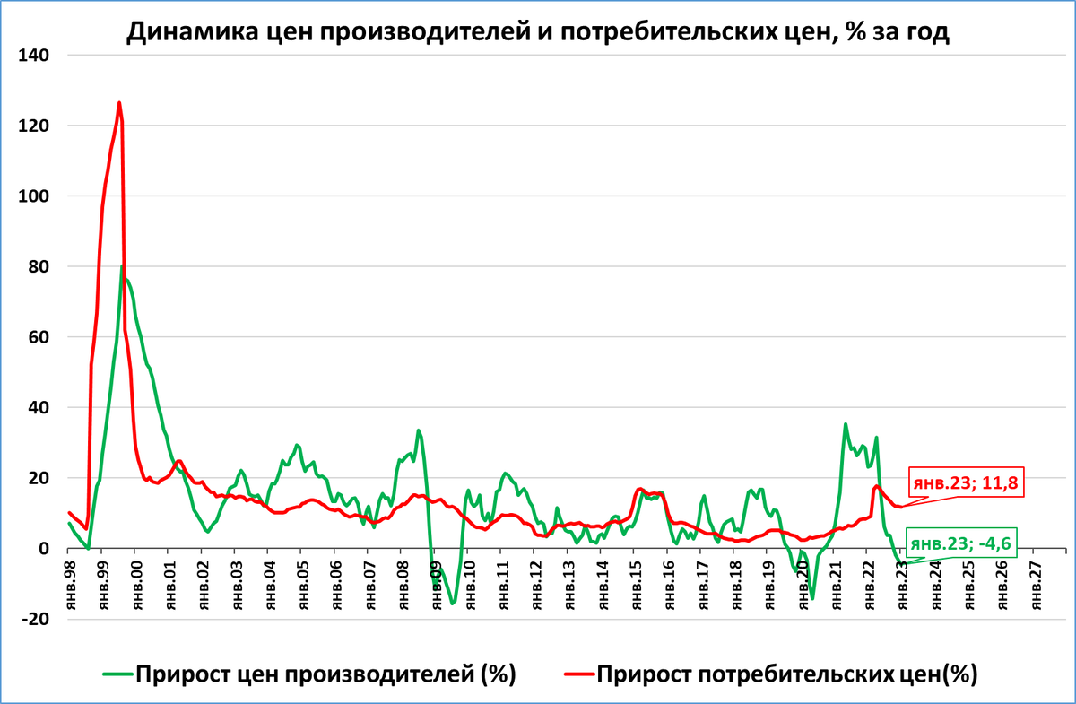 По итогам января цены производителей показали падение -4,6% годовых.