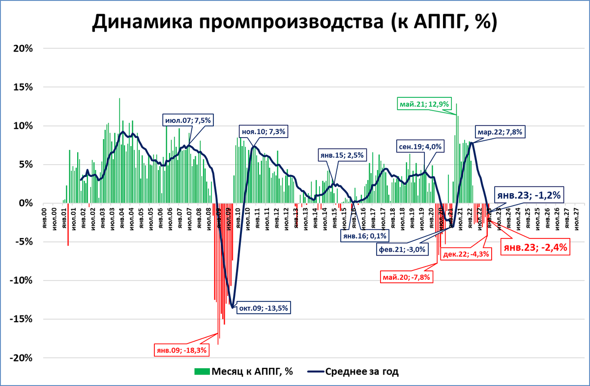 Во-вторых, «ещё не вечер». Другими словами, -2,1% в 2022 году – это не окончательная оценка ВВП. Будут пересмотры, и пересмотры в сторону повышения.