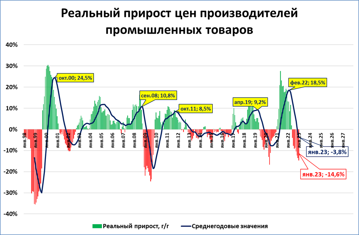 Оценка: Падение реальных цен производителей – негативный сигнал. Обратите внимание: такие падения наблюдаются во время кризисов.