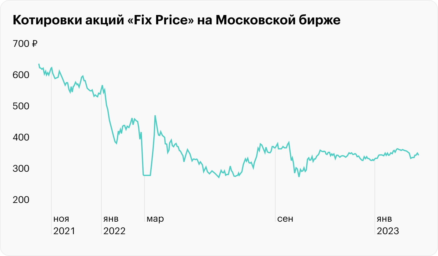 Что касается сравнения Fix Price с конкурентами, например по мультипликаторам, то большинство компаний перестали публиковать полноценную финансовую отчетность — соответственно, необходимых данных для анализа нет. За 2022 год котировки просели более чем на 40%.