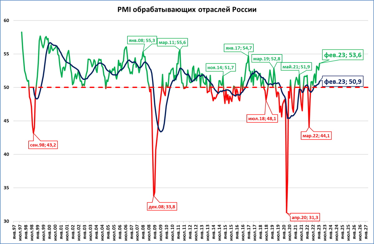 — не только выше 50 пунктов (говорит о росте деловой активности);