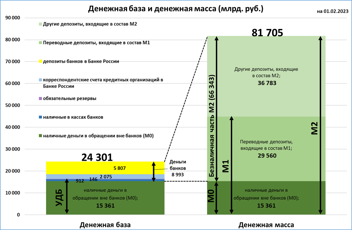 Обратите внимание: Банки, имея 8,9 трлн. резервов ("деньги банков") поддерживают с их помощью более 66 трлн. безналичной денежной массы.
