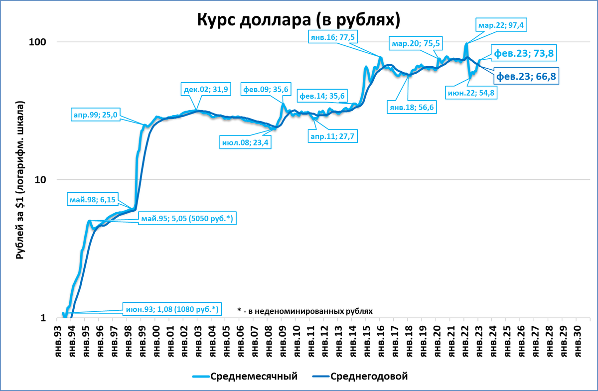 Среднемесячный курс в феврале удержался возле отметки 73,8 рублей за доллар.