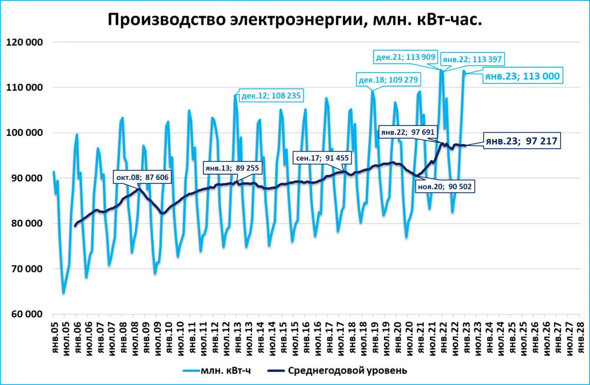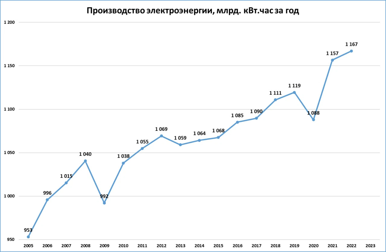 Кстати, в 2022 году производство электроэнергии установило исторический рекорд (третий график).
