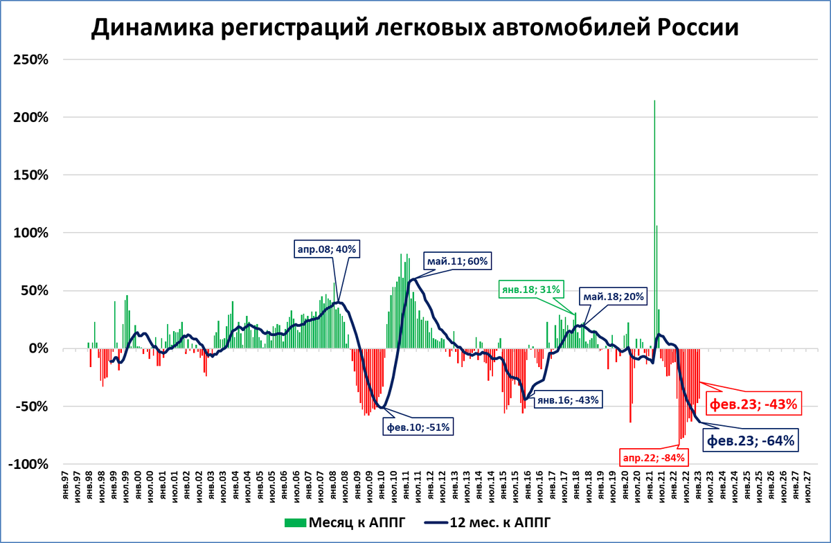 — Это на 43% меньше, чем в феврале 2022 года (см. второй график);