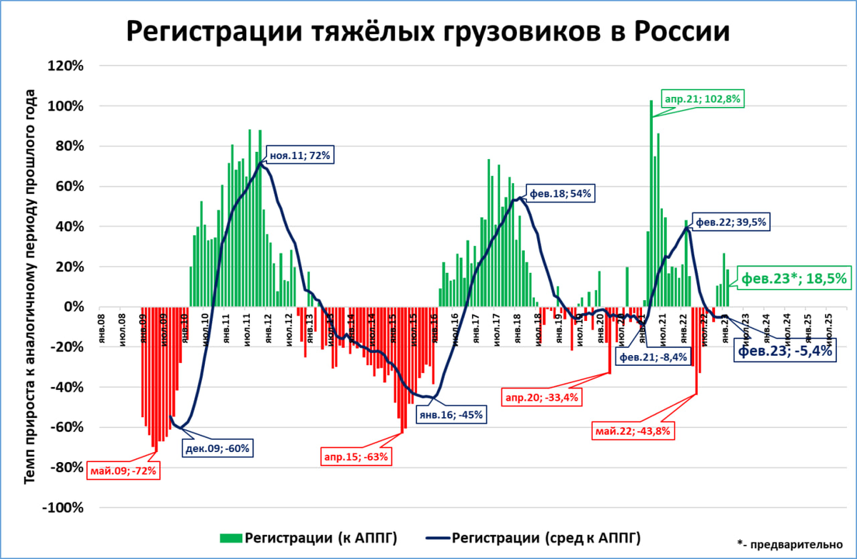 Появились предварительные данные по российскому рынку грузовиков в феврале: +17%. Рынок растёт четвёртый месяц подряд.