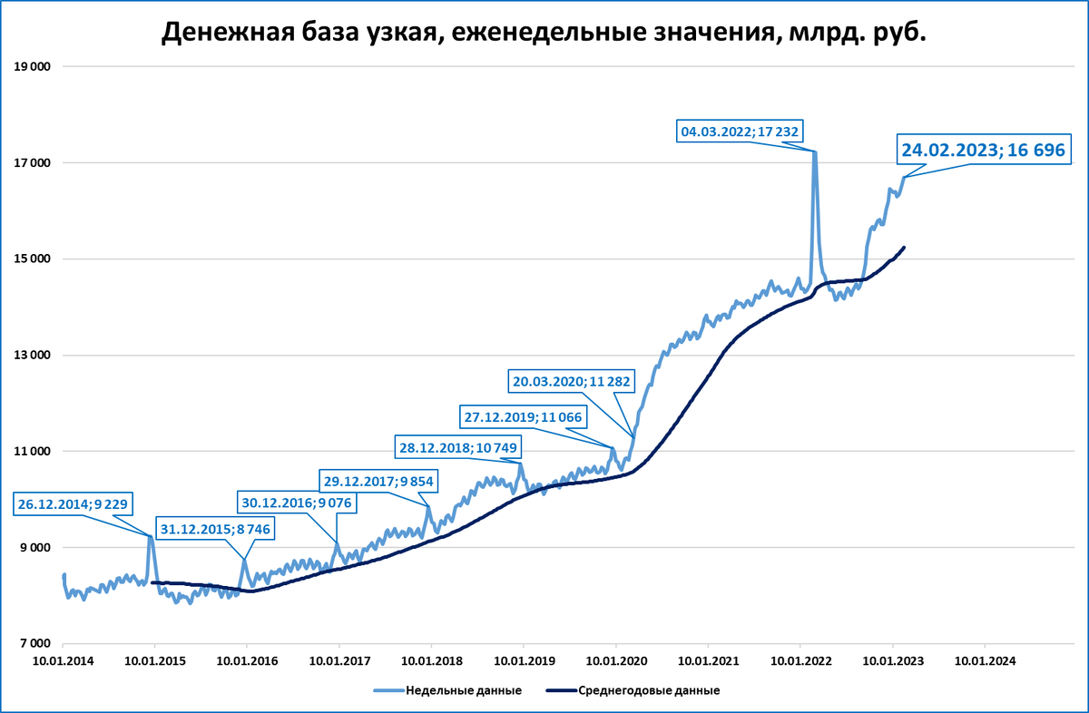 Узкая денежная база поднимается к историческим рекордам марта 2022 года.