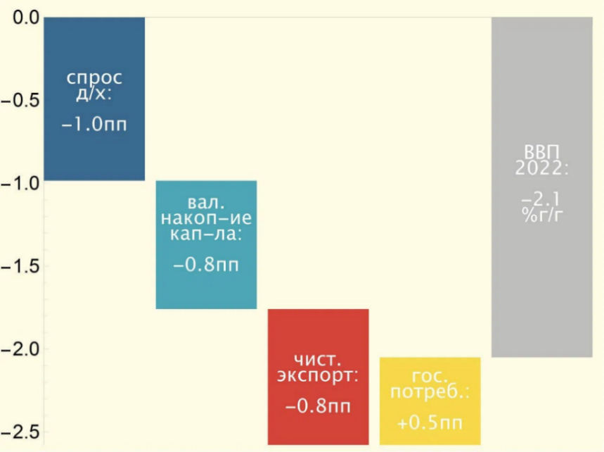 — При этом чистый экспорт внёс не положительный, а отрицательный вклад в динамику ВВП (-0,8 процентных пункта). То есть, говоря образно, помогал ВВП не расти, а падать.