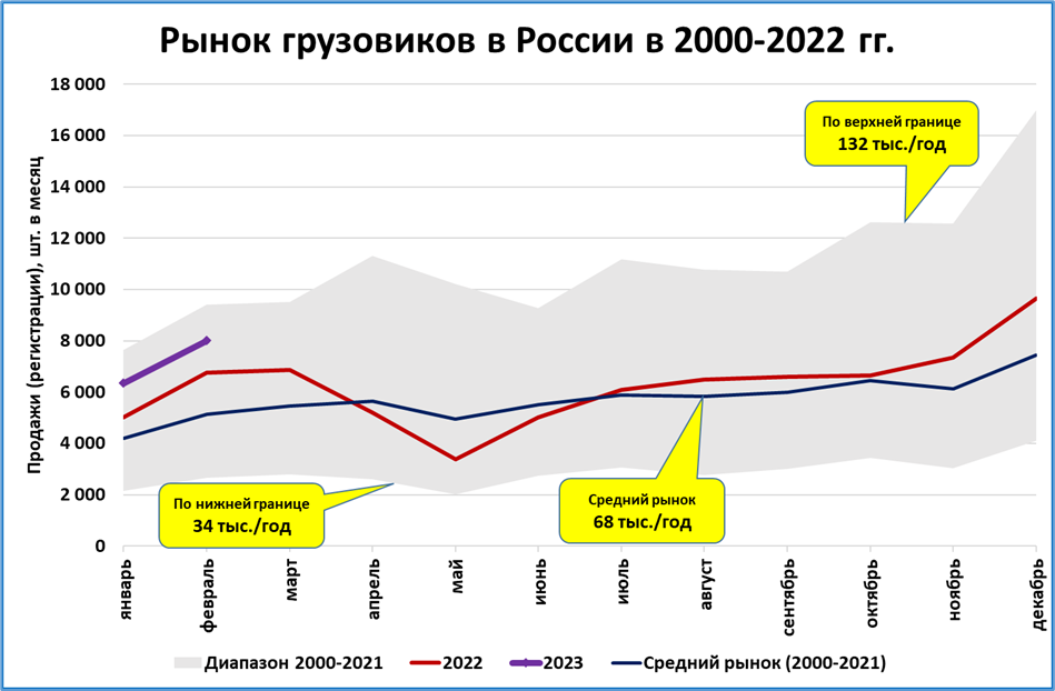 Если темпы первых двух месяцев (+22%) сохранятся до конца года, то рынок в 2023 году вырастет до 91,5 тыс.