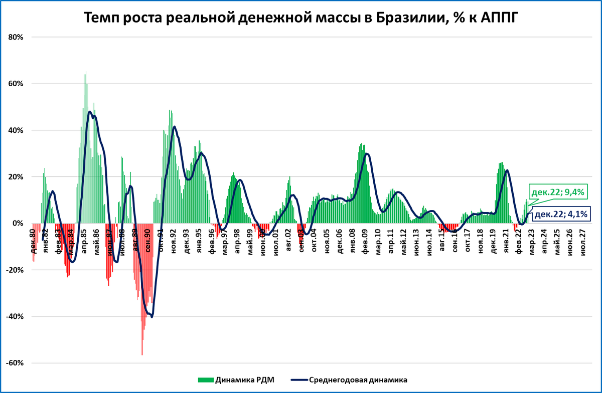 Прогноз: Если ЦБ Бразилии продолжит наращивать реальную денежную массу, то высокие темпы ВВП сохранятся.