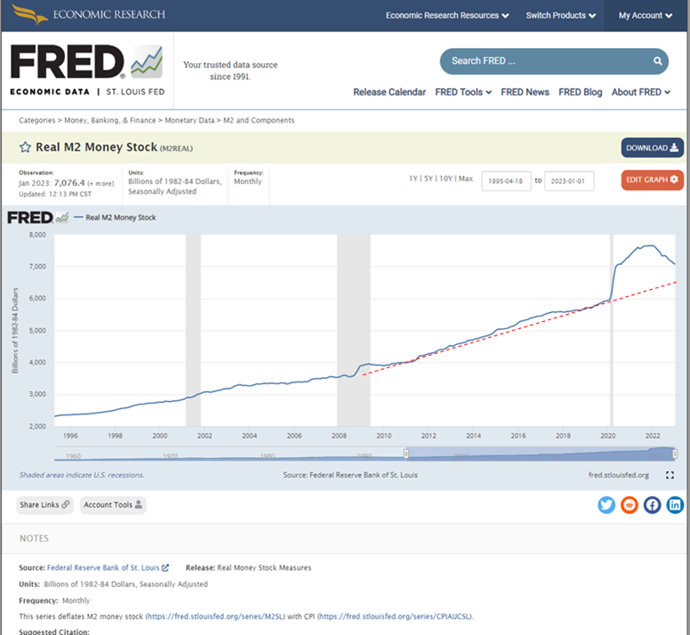 Даже после снижения реальная денежная масса в США находится выше многолетнего тренда.