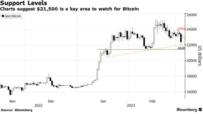 Уровни поддержки | Графики показывают, что 21 500 долларов — это ключевая область, за которой стоит следить трейдерам биткойна