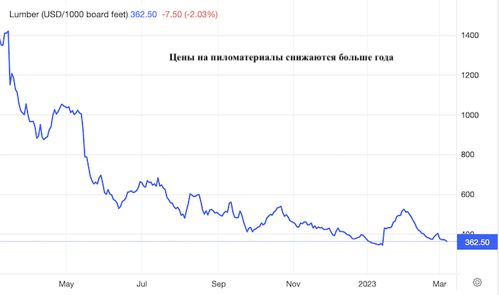 В понедельник цены на природный газ в США упали на 13%, поскольку мягкая погода отразилась на динамике спроса. С начала года цены снизились на 34% из-за сокращения спроса. Между тем, цены на пиломатериалы резко упали, потеряв 22% за последний месяц на фоне замедления темпов роста спроса на жилье.