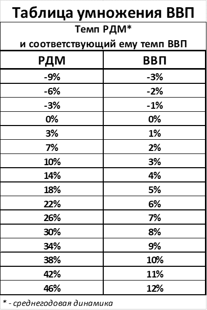 По «таблице умножения ВВП» такому росту РДМ соответствует рост ВВП на 4%.