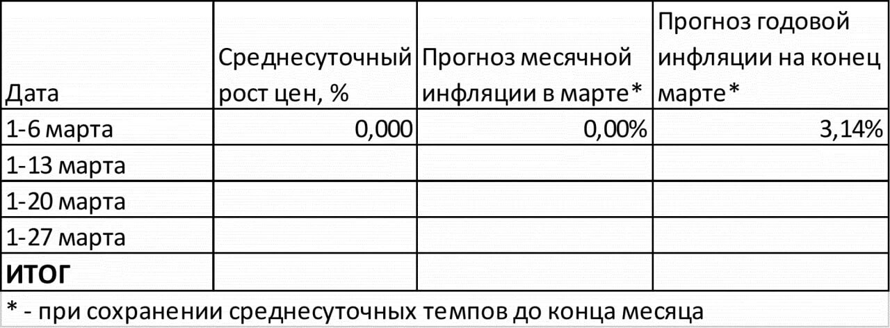 Цены замерли. Если такая ситуация сохранится до конца месяца, то по итогам марта инфляция составит 3,14% годовых.