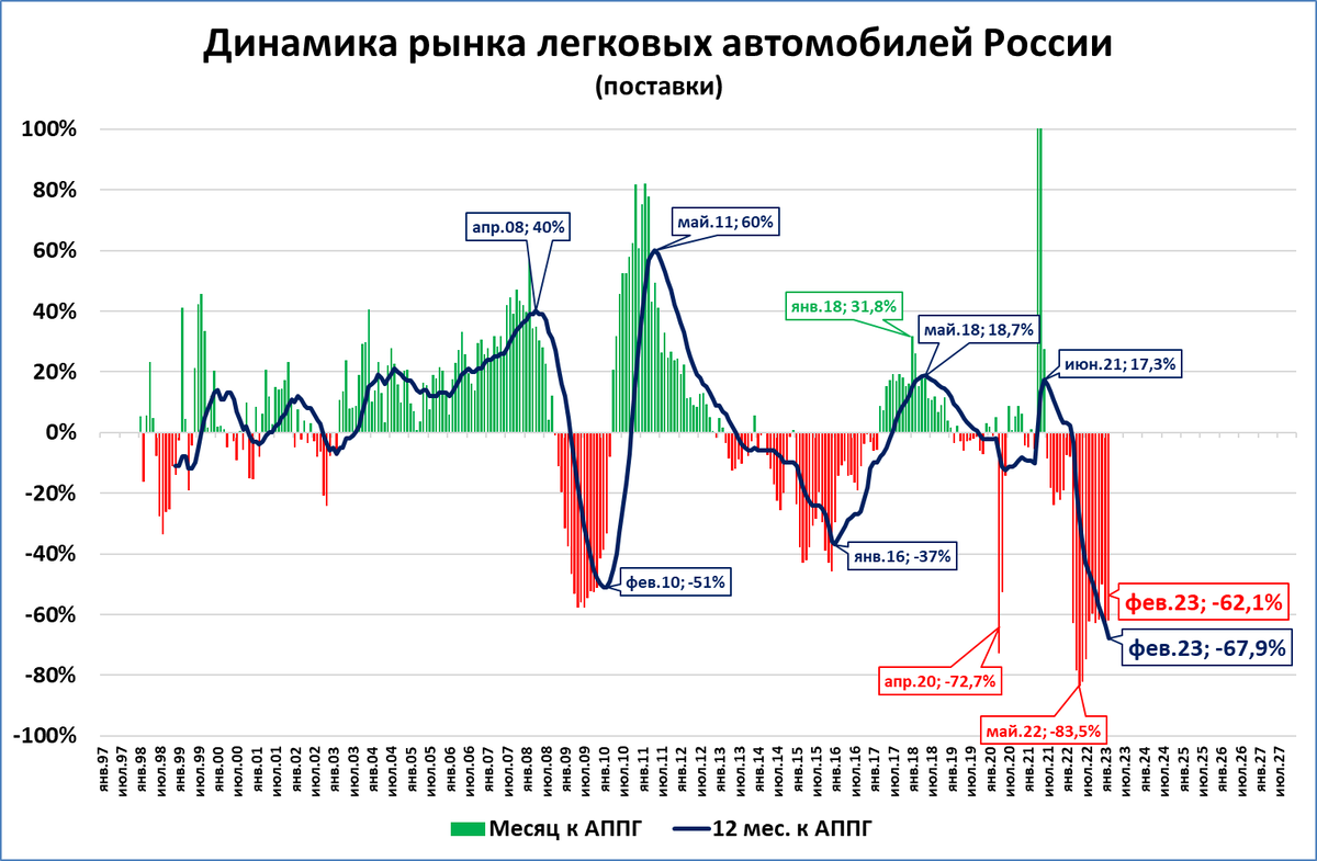 Информация: статистика (поставок) АЕБ неполная (не включает в себя некоторых производителей) и поступает позже, чем статистика регистраций от агентства «Автостат». Мы продолжим отслеживать статистику АЕБ, но публиковать в макрообзорах больше не будем.